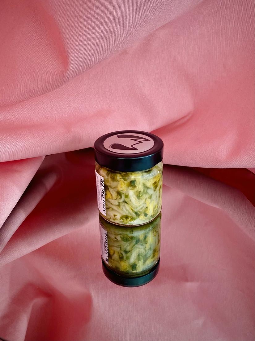 A limited edition line of live ferments conceived as a complete design project, from recipe development and production to label design and photography. Each jar was named and composed as a distinct character: specific ingredient combinations, colour logics, and fermentation profiles that made the invisible process part of the visual identity. The edition was plant-based, using vegetables, seaweeds and spices as both flavour and narrative material.